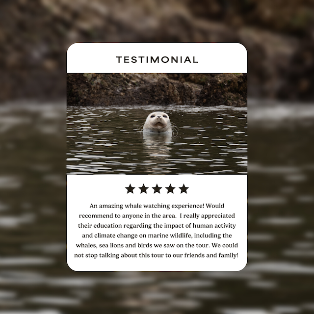 At Seabreeze Adventures, we believe that respectful wildlife viewing, knowledgeable guides, and thoughtfully run tours create the most meaningful experiences on the water. It’s why so many of our passengers recommend us, return year after year, and share their stories long after the boat is back at the dock.
